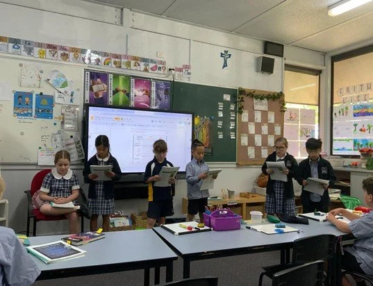 It has been another busy and exciting fortnight in Year 1! In Literacy, we have been reviewing our sounds and exploring how to use adjectives to make writing more descriptive. In Numeracy, we have begun learning about 2D shapes, identifying their features and noticing them in our environment. During SEL, we have focused on understanding bullying, learning how to recognise it, what to do if it happens, and how to be kind and supportive classmates. In Faith Life, we have continued exploring how technology helps us in the 21st century, including creating stop motion videos. We also spent time designing a new school logo and observing Remembrance Day, learning about its importance and the ways we can show respect and gratitude.